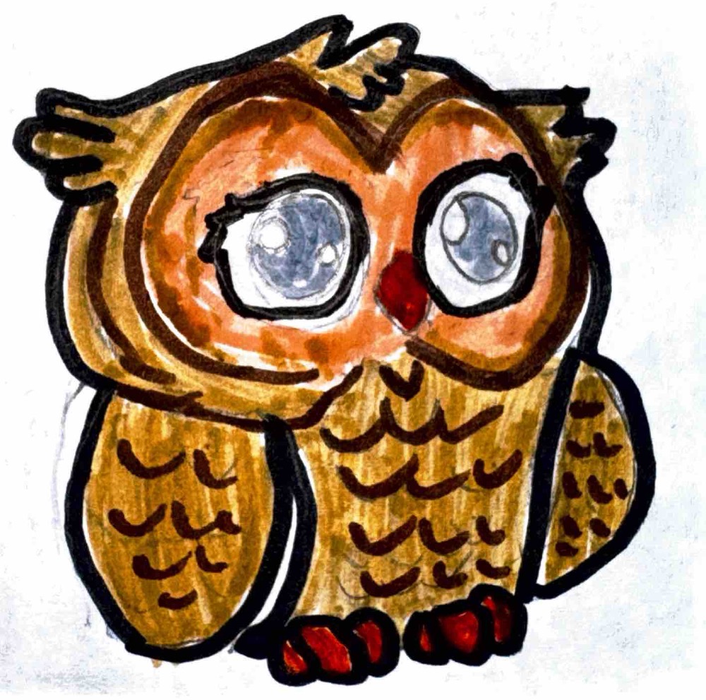 Sovička je logo našeho školního družinového časopisu – Družináček. Namalovaly ji žákyně páté třídy.